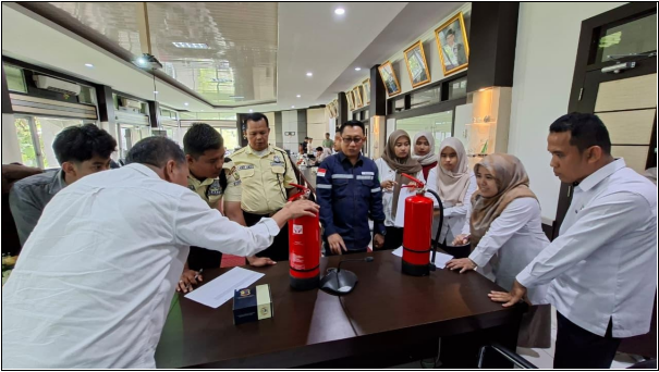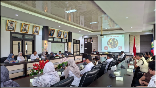 Acara dimulai dengan pemaparan materi oleh Bapak Yulizar Desta Jaya, S.T, yang menjelaskan dasar- dasar kebakaran, termasuk pengertian api, konsep segitiga dan tetrahedron api, hingga mekanisme penyebaran panas melalui konduksi, konveksi, dan radiasi. Peserta juga mendapatkan pengetahuan seputar APAR, mulai dari jenis-jenis alat pemadam hingga teknik pemakaian yang aman dan efektif. Penjelasan materi disampaikan secara interaktif, sehingga peserta dapat memahami hubungan antara penyebab kebakaran dan cara penanganannya dengan lebih mudah.